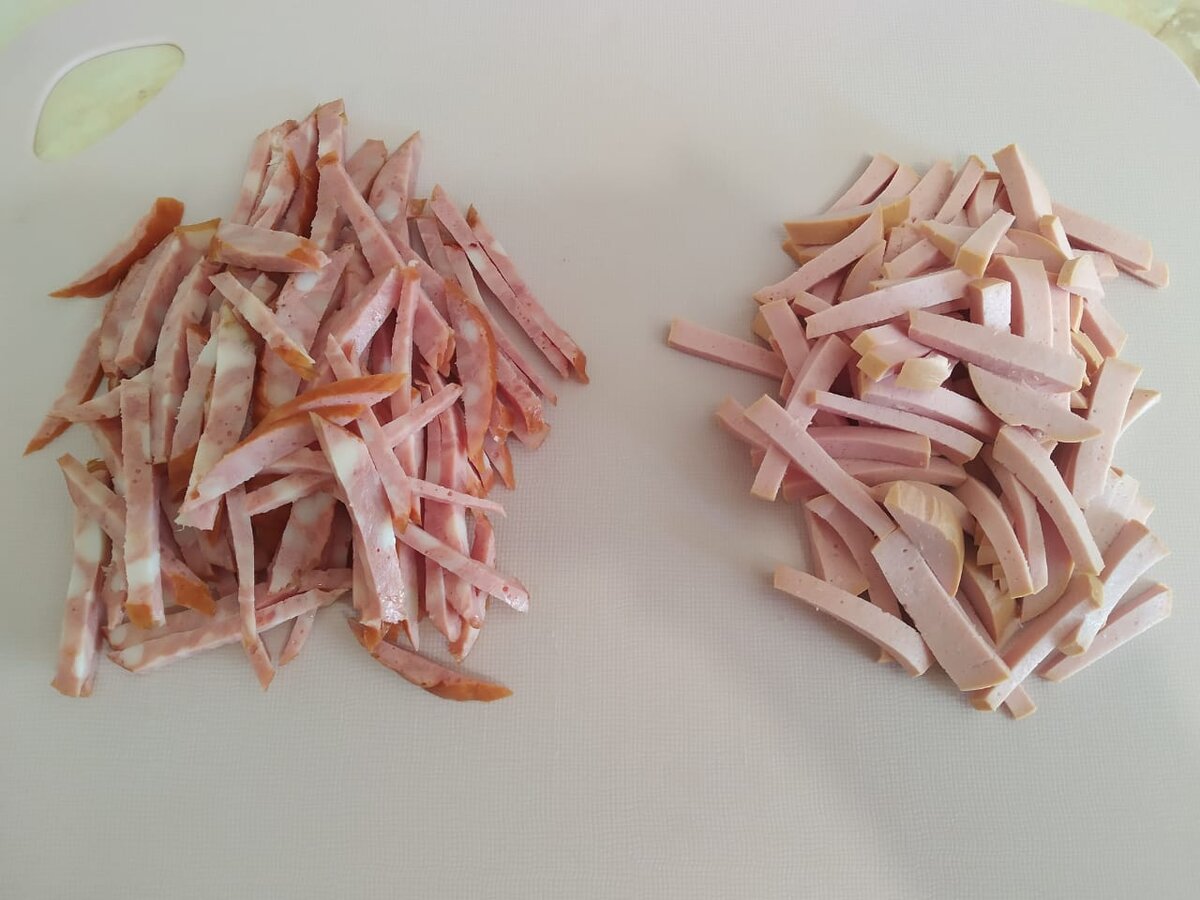 Этот салатик не займет много времени на его приготовление. А займет достойное место на любом празднике. Салат получается лёгкий и вкусный не смотря на его состав. Ингредиенты: 150 гр. ветчины (в этот раз использовала варёную) 150 гр. п/к колбасы (или сервелат) 150 гр. сыра 150 гр. сыра колбасного янтарного 2 огурца 2 помидора 150 гр. майонеза Зелень Приготовление салата: Всё ингредиенты нарезаю соломкой. Первым нарезаю колбасу. Если вы не любите колбасу, то можно попробовать заменить вареной или копченной куриной грудкой. Я думаю тоже будет вкусно. Следующим шагом я нарезаю 2 вида сыра, также соломкой. Далее режу свежие огурцы. Затем порезала также помидоры. И последний шаг: нашинковала зелень (я использовала перья зелёного лука). После того, как я нарезала все ингредиенты, можно собирать мой вкусный салат. На блюдо "горками" выкладываю ингредиенты, а в середину кладу зелень и сверху добавляю майонез. В таком виде его можно подать на стол. Гости будут удивлены красивой подачей салата