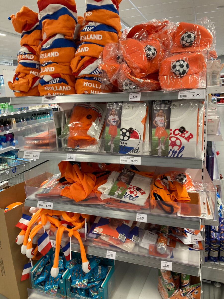 Голландская сборная в этом году хорошо играет. По крайней мере выходит из группы в 1/8 финала, одержав 3 победы. Магазины массово продают все оранжевое. Оранжевый - цвет Голландии. В честь короля Вильгельма Оранского (Оранжевого), который возглавил сопротивление против Испании аж в 1556 году. До сих пор династия Оранских у власти.