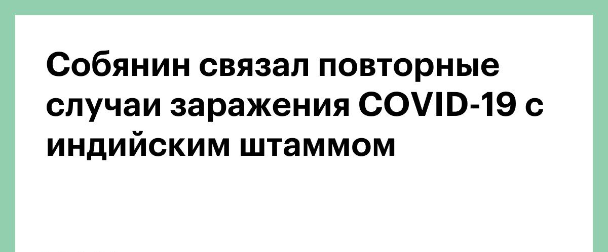 В Москве зафиксировали повторные случаи заражения COVID-19 у переболевших коронавирусом и тех, кто прошел вакцинацию против инфекции, сообщил мэр Сергей Собянин. По его словам, такая тенденция связана с распространением в столице индийского штамма заболевания. «Уровень иммунитета для того, чтобы оградить себя от индийского штамма, нужен, чтобы был в два раза выше, по сравнению с уханьским», — пояснил Собянин. Удивительно, но с одной стороны Собянин впервые озвучил аргумент противников обязательной вакцинации, заявив о повторных случаях заболеваний. Полагаю, что число таких кейсов растет так, что скрывать это уже не представляется возможным. И в этом месте - осталось дождаться правды о том, что люди могут умереть и после сделанной прививки, что, к сожалению, полностью нейтрализует главную официальную мантру сегодняшнего дня: "Привейся - и болей легко". С другой стороны - мэр продолжает "гнать пургу" про "индийский" штамм, в чем совсем некомпетентен. Кто дает ему эти тексты про Индию, М
