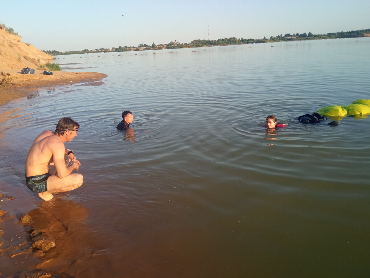 Всем привет. Сегодня поведаю вам про один из обрядов секты свидетелей СИМ, - утопление студента))) Ну а если без стёба - то речь пойдёт про занятие по отработке практических навыков самоспасения при приводнении. Занятие такое есть в учебном плане уже на получение лицензии категории "В" по USPA - американской парашютной лицензии. Лицензия сия весьма в мире популярна, желающих аттестоваться из числа российских скайдайверов немало. Ну а раз, в учебном плане есть - пойдём "топиться", желающие))) Водная тренировка, будем выражаться по русски, проходит в песчаном карьере, что километрах в шести от нашего аэродрома. Основная задача - научить юного скайдайвера плавать в снаряжении и освобождаться от парашюта. Для начала студенты плавают в своих комбезах... Это оказывается неожиданно тяжело... Наплававшись вдоволь обучаемый одевает парашют, и далее, заботливый и чуткий инструктор Иван уводит студента на глубину и накрывает куполом... У обучаемого - задача выбраться из под купола, освободит