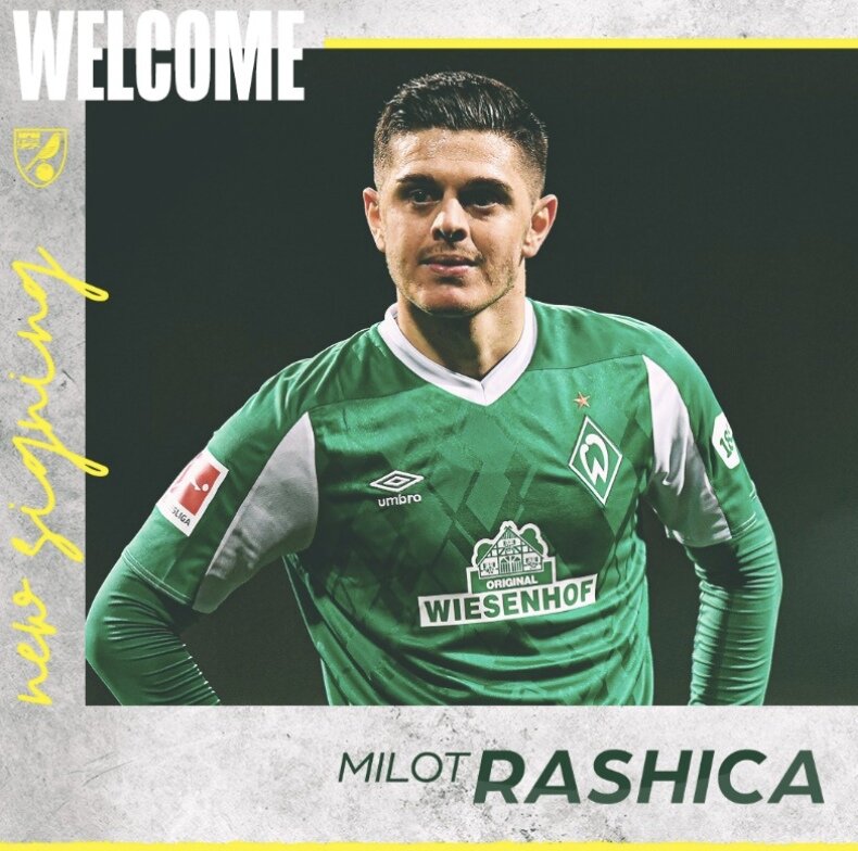 Нападающий Милот Рашица перешел в «Норвич», сообщает официальный сайт клуба 22 июня. Футболист перешел из «Вердера». Сумма трансфера не разглашается. Контракт рассчитан на четыре года. 24-летний косовский форвард в прошлом сезоне провел 26 матчей за «Вердер» и забил три мяча при пяти голевых передачах. «Норвич» по итогам прошлого сезона завоевал путевку в премьер-лигу.