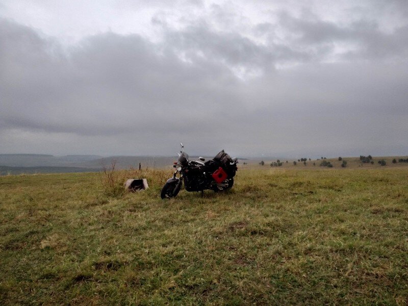 Хотя как позже признался Владимир , был момент когда промелькнула мысль что молния может жахнуть и в него , так как мотоцикл с полным баком бензина стоит на открытом месте , а палатка привязана к нему железной цепью. Мало того , сама палатка практически стоит на железо-бетонном основании , которое по идее заземлено. Разница между вспышками молний и раскатами грома становились всё меньше и меньше , намекая на то что шанс остаться здесь на совсем всё выше и выше. Однако рыпаться было уже поздно и Владимир принял простое решение. Будь что будет. И спокойно заснул.