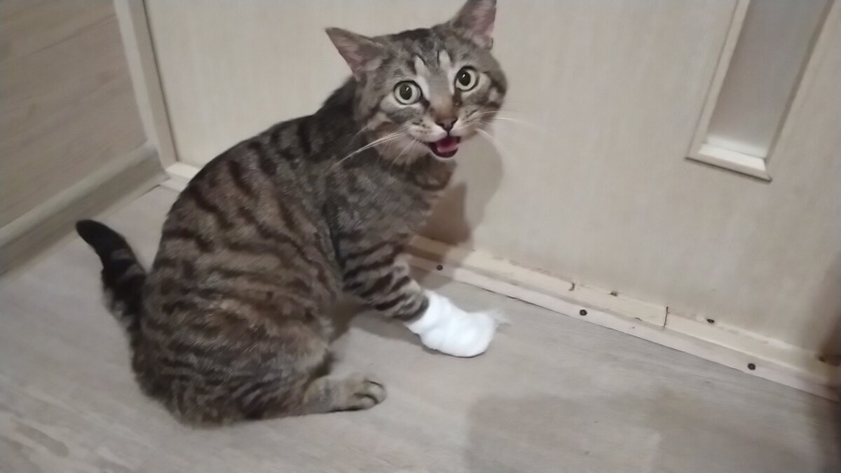 Соседский кот поранил лапу. Возили в ветлечебницу, провозились целый день