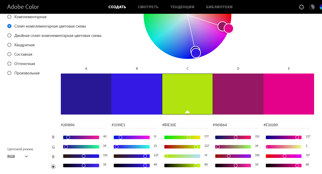 Всем привет! На связи Елизавета. Сегодня хочу показать три интернет-источника, позволяющих на 100% закрыть потребность в поиске цветовых сочетаний. Мне кажется, пригодиться может каждому человеку. Приступим. Очень короткий ликбез (про цветовые схемы и кодирование цветов): 1. Кодирование цветов Лично мне попадалось на практике два подхода: (ххх, ххх, ххх) или хххххх В первом варианте каждый из трех элементов может иметь значение от 0 до 255. Например, (0, 0, 0) - черный и (255, 255, 255) - белый. Второй вариант для кодирования на веб-страницах. Здесь 000000 - черный, FFFFFF - белый. Таблицы при желании можно легко найти в интернете. 2. Цветовые схемы Цветовая схема - это определенная комбинация цветов, позволяющая получить красивые сочетания цветов. Интернет-ресурсы, которые позволят найти любые сочетания цветов 1. Цветовой круг от Adobe Абсолютно бесплатный инструмент. Позволяет очень гибко и тонко работать с цветовым кругом. Предлагает на выбор большое количество цветовых схем. В п