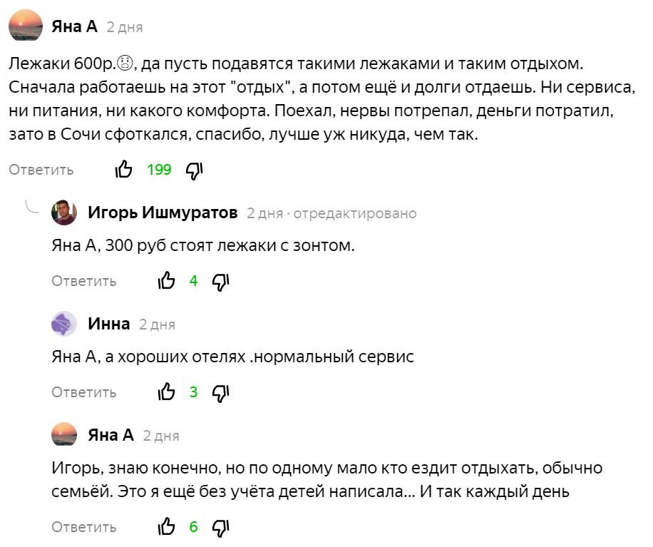 В этом году мы встречаем уже шестое лето, после того как перебрались в Адлерский район Большого Сочи. В своих статьях стараемся рассказать о нашей жизни на пенсии, об интересных местах и явлениях. #жизнь на пенсии Недавно мы опубликовали очередную статью с информацией об обстановке не наших пляжах: Сириус (Сочи), 20.06.21, пляжи южной части Имеретинки: ситуация совершенно разная! Много фотографий. Она вызвала бурную реакцию! Особенно народ возмущён актуальными сочинскими ценами, на всё начиная от продуктов и цен в столовых и кафе, до стоимости номеров в отелях и аренды жилья в частном секторе. И ВОЗМУЩЁН СОВЕРШЕННО СПРАВЕДЛИВО ! Но давайте зададим простой вопрос: у нас в стране, что выросли цены только на отдых и только в Сочи и только для отдыхающих?! ЦЕНЫ ВЫРОСЛИ ВЕЗДЕ, НА ВСЁ И ДЛЯ ВСЕХ ! И условно говоря для обычной российской семьи, которая приезжает на отдых и для человека, который сдаёт им квартиру, или для хозяев отеля, где они будут проживать, и для обычных жителей нашего г