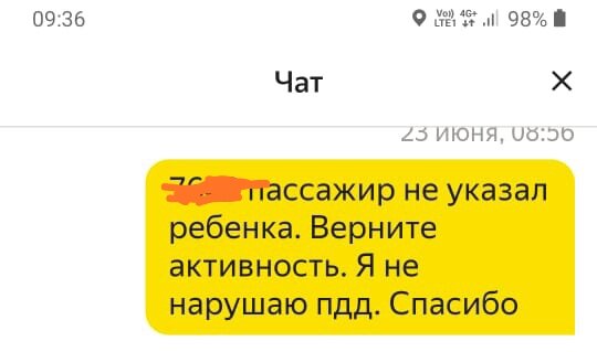 Всем привет. Кто давно работает в Яндекс Такси, тот понимает, что по факту техподдержки в Яндекс такси просто нет. Часто тебя либо вообще игнорят, либо отвечают шаблоном, который зачастую не подходит к твоему вопросу. Но надо понимать, что с такой же проблемой сталкиваются и пассажиры. В итоге техподдержка часто своими не правильными ответами, вводит в заблуждение пассажира, а те потом начинают из за этого конфликтовать с водителем. Ну вот давайте рассмотрим наглядный пример. Подъезжаю на адрес, вижу что с ребенком, отменяю заказ и пишу в поддержку Для тех кто возит детей без детского кресла будет полезна эта информация Я думаю поездка за 100 рублей не сделает вам кассу, чтоб рисковать штрафом 25 тыс рублей. И помните, что вы можете попасть в ДТП даже не по вашей вине, и не дай бог ребенок, что то себе повредить. Вас могут спокойно посадить за решетку. Поэтому логично, что техподдержка должна вернуть мне активность, а пассажиру объяснить, что для этого есть детский тариф. И Вро