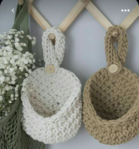 Как-то набрела я на фото различных корзинок для фруктов, цветов, разной мелочи. И захотелось мне связать что-то подобное. В наличии у меня была толстая пряжа 100м/100гр, и я решила связать корзину для фруктов. Принцип вязания такой: вначале вяжется круг нужного вам диаметра, это дно, затем ряды вяжутся не сильно прибавляя, чтобы пошло закругление небольшое, а чтобы придать форму удобную для вешания делаются постоянные убавления в одном месте. И вяжется нужная вам глубина. В конце вывязывается петелька. А можете по рядам вязать со мной. Вяжем 4 воздушные петли и замыкаем их в кольцо. 1 ряд: 3 воздушные петли, 13 столбиков с накидом. 2 ряд: Вяжем по два столбика с накидом в каждую петлю. 3 ряд: 3 воздушные петли подъема и туда же столбик с накидом, воздушная петля, пропустить одну петлю предыдущего ряда, продолжаем 2 столбика с накидом в одну петлю, воздушная петля, через петлю. 4 ряд: 3 воздушные петли подъема, столбик с накидом, * воздушная петля, столбик с накидом, воздушная петля, дв
