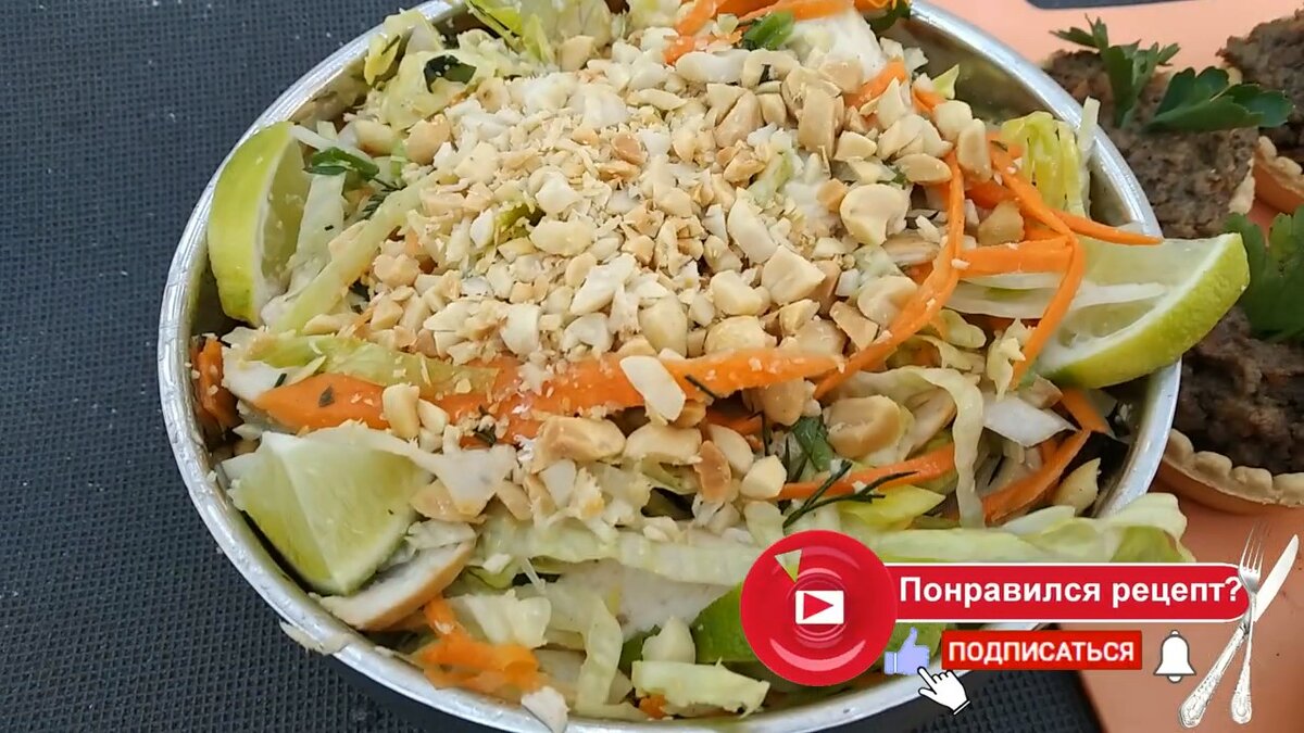 Всем привет. Сегодня мы будем готовить тайский салат в лесу, дым костерка и чистый воздух создают прекрасную атмосферу для трапезы. Для этого нам понадобится: - филе курицы; - салат Айсберг; - зелень; - морковь; - лайм; - соленый жаренный арахис - чеснок. Преступим! Вначале необходимо сварить курицу, для этого мы будем использовать котелок и костер. Можно расположить котелок на углях, между двух горящих веток или подвесить на треногу, как вам нравится. Пока варится курица мы начнем тонко резать морковь. Мелко нарезаем зеленый лук И салат Айсберг.Складываем все в одну чашку, заготовка для салата готова. Теперь необходимо сделать заправку. Измельчаем чеснок и складываем его в другую чашку. Измельчаем зелень. Дальше идет секретный ингредиент - лайм. Для того, чтобы он лучше дал сок, его нужно немного помять. Разрезаем пополам и делаем прорезь и выдавливаем . Четверть лайма оставьте на украшение блюда. В рецепте можно использовать рисовый уксус, но мы ограничились одним лаймом. Затем добав