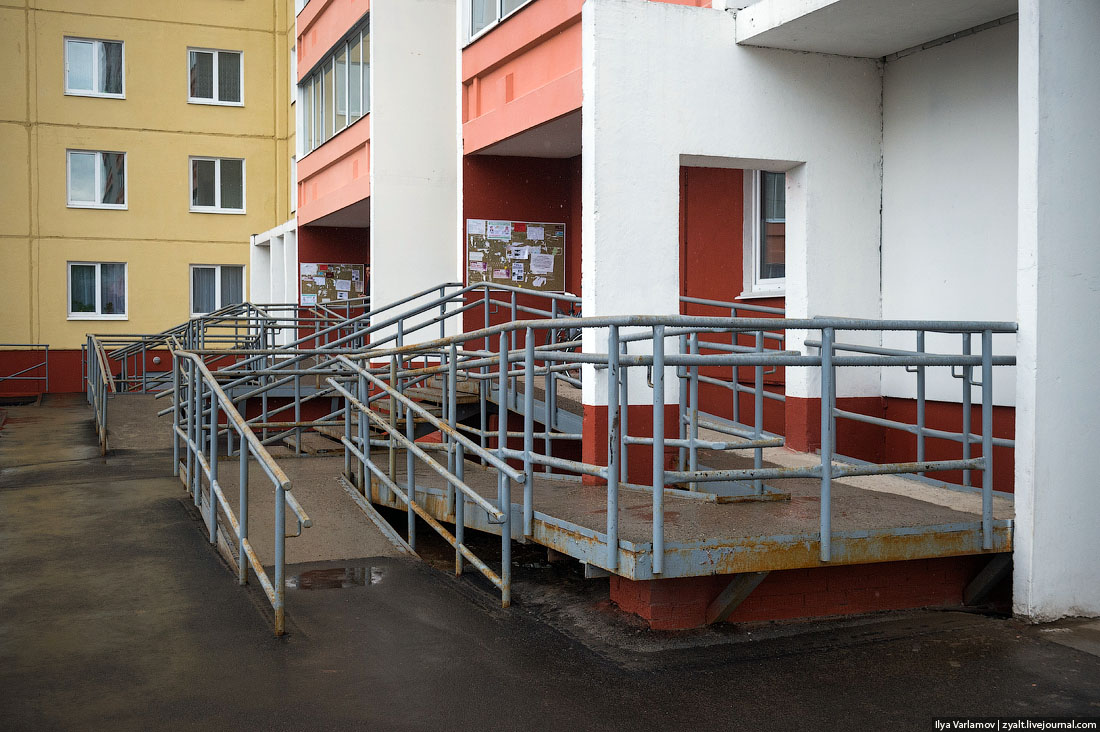 Скажите, а почему нельзя делать вход в жилой дом на уровне земли? Почему в гостиницу, торговый центр или магазин вход делают нормальным, а в жилой дом обязательно лепят цокольный этаж, а дальше громоздят ужасные лестницы с пандусами: На первых этажах все равно почти всегда располагаются магазины или сфера обслуживания. Снегом вход не завалит, потопы у нас тоже редкость. Так почему не делать в дома удобные входы? Не слышал еще ни одного объяснения, зачем делают дома неудобными. Обычно начинают говорить про удобные проветриваемые подвалы, про какие-то нормы и т.д. Но люди годами мучаются, таскают сумки по лестнице, коляски, велосипеды, старикам неудобно. Неужели нельзя проектировать так, чтобы в доме было удобно жить? Может быть вы знаете, почему так происходит?