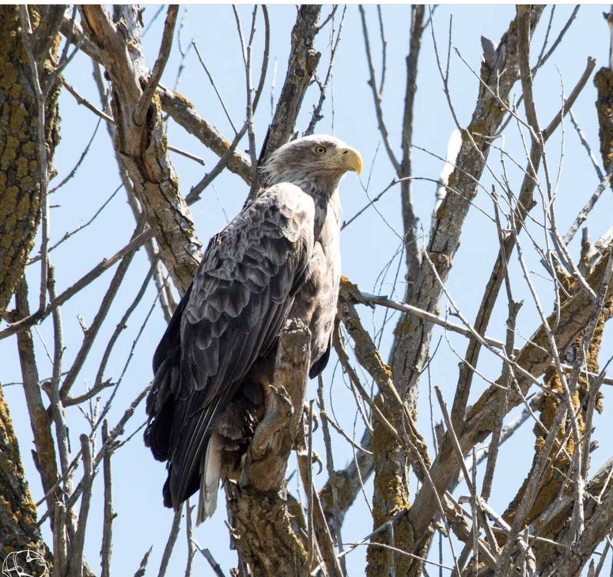 Мы шли по реке на катамаране, и почти каждое сухое дерево венчал собой шикарный орлан. С верхушки удобно высматривать рыбу, видимо. Это основная добыча белохвоста.
