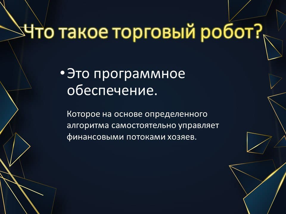 •КАКИЕ ВИДЫ ЗАРАБОТКА ПРИСУТСТВУЮТ? 1. Ты открываешь счёт на брокере. Привязываешь к своему счету РОБОТа, который будет торговать за тебя! (только не мешай ему). При создании РОБОТа, учли многолетний опыт торговли, как других РОБОТОВ, так и людей. Он знает своё дело. Торгует при минимальных, очень лайтовых настройках! Делает в день до 0,5% от суммы твоего депозита. 2. Так же есть партнерская программа. Здесь все очень просто. Ты советуешь своему другу/подруге приобрести чудо-РОБОТа. Он регистрируется на брокере, открывает торговый счёт. И, как только он начинает торговать и получать первые деньги, на твой партнёрский счёт будут поступать средства от самого брокера. Соответственно, если он не будет торговать,
