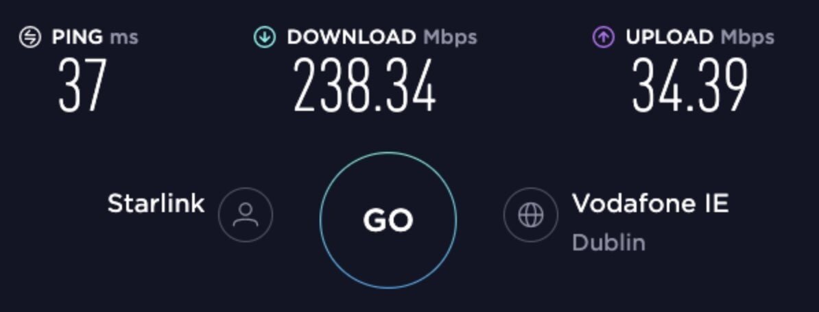 Интернет, который мы заслужили John Collison: — Дичайшая производительность от SpaceX Starlink в Ирландии. (Партнёрство со Stripe для платежей, конечно!) Было бы замечательно расширить широкополосный доступ в сельской части Ирландии – просто поставьте тарелку снаружи и подключите её. Надеюсь, что они скоро получат полное разрешение на работу в Ирландии. | Elon Musk: — Круто! 🇮🇪