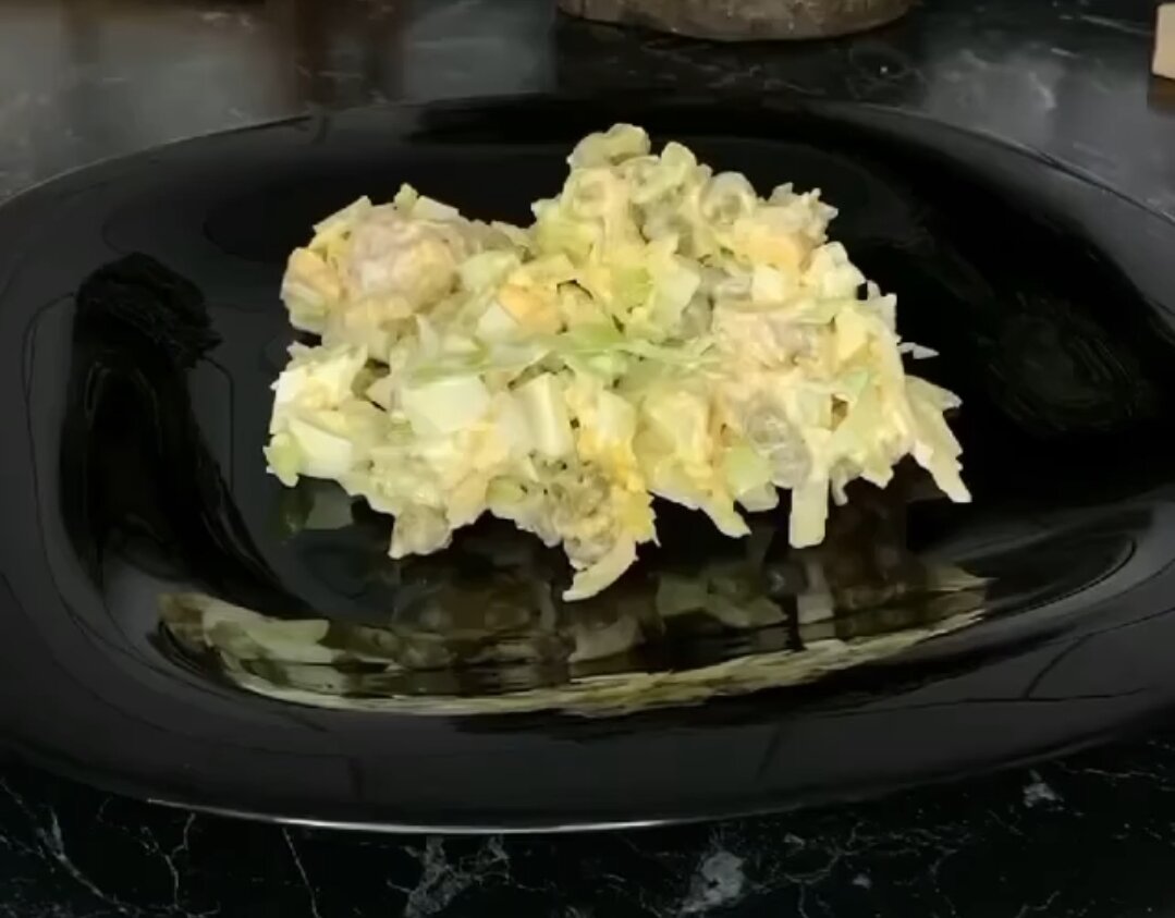 Всё очень просто. Варёные яйца нарезаем средними кусочками, добавляем к ним горошек. Китайскую капусту шинкуем. Если хотите более лёгкий салат, кладите больше капусты. Добавляем капусту к яйцам и горошку, туда же тертый сыр и баночку консервированного тунца. Мне кажется, по моему вкусу, что в данный салат больше подходит тунец в масле, нежели в собственном соку, но вы смотрите, как вам больше нравится. Всё тщательно перемешиваем и заправляем майонезом. Можно, конечно, и сметаной, но что выпендриваться, когда с майонезом вкуснее.
