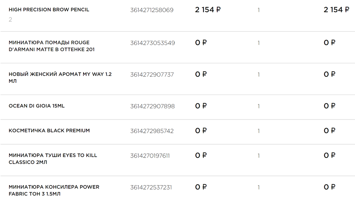 Вот мой оформленный заказ. За покупку одного карандаша дали 6 подарков, причем тушь нормального размера, а косметичка качественная. Советую обратить внимание на данный сайт, так как в нем часто происходят такие акции. Например сейчас можно получить в подарок 15 мл. аромата: Промокод, который был у меня был в открытом доступе, и при подписке можно здорово сэкономить. Вот пример промокодов, которые присылают: Всем советую