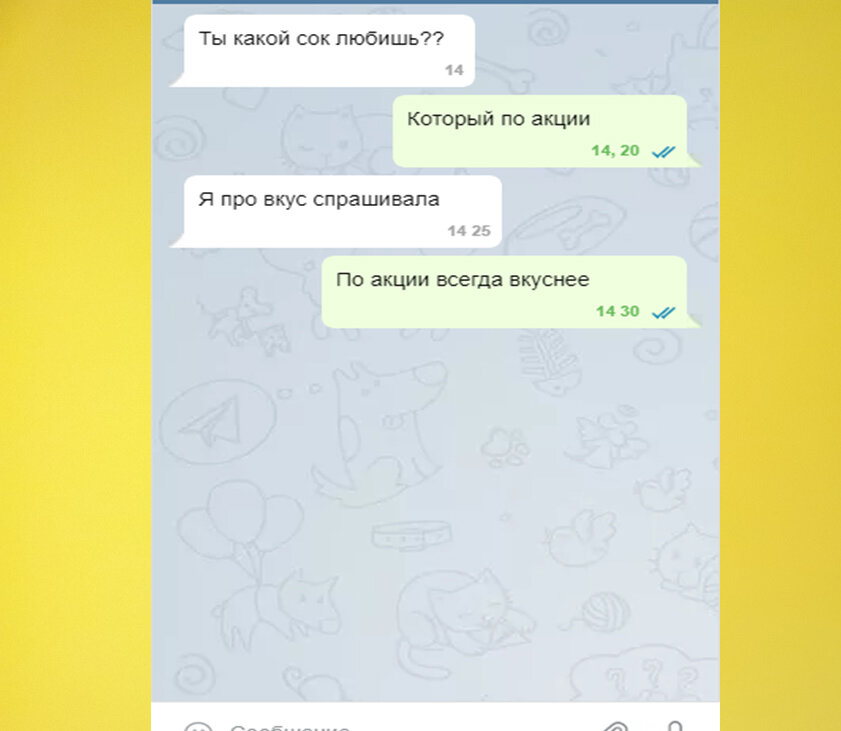 Практически у всех есть подруги , с которыми мы делимся всем , ведь они могут поддержать ,а иногда жестко пошутить. Составила 8 смешных жизненных переписок между подругами в которых можно найти частичку себя ))))) Акции туманят разум , я сама часто беру ненужное , просто потому что сейчас акция , а моя подруга живет по принципу - вижу товар по акции, беру)) Мне кажется быстро я собираюсь только на работу ))) а вот когда речь идёт сходить погулять , в кино и тд , начинаются 2х часовые сборы ))) Когда вместо поддержки , тебе сказали правду ) Ограничивая себя на 2 недели или месяц , от различных продуктов мы худеем , а после начинаешь кушать всё , и теряешь счет калориям) Сладости первый всадник стресса)))) У вас бывало , что вы специально не читаете смс ???? но для хитрой подруги , это не проблема)) внизу слово съехало , было вот так : Я написала так, чтобы ты заметила . Интересно , как вы относитесь к играм ? и играет ли ваш муж или молодой человек ? Мой любит провести время с друз