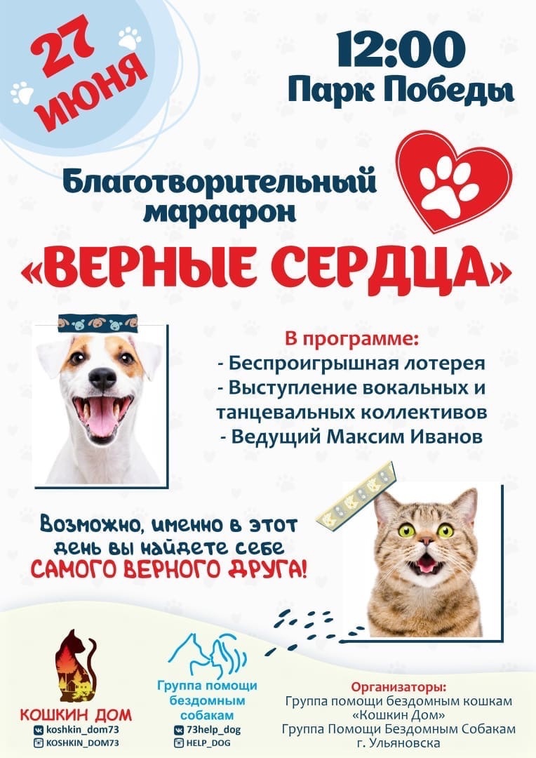 🎉🎉🎉ВСЕМ! ВСЕМ! ВСЕМ!🎉🎉🎉 27 июня в 12:00 в парке Победы стартует долгожданный марафон "Верные Сердца" 💗💗💗 Группа помощи бездомным собакам г.Ульяновска и КОШКИН ДОМ - помощь бездомным кошкам Ульяновска совместно с Волонтёрским движением «Вверх» проводят очередной Благотворительный марафон в поддержку бездомных животных нашего города. А так же в нашем МАРАФОНЕ ДОБРА можно поучаствовать из любого уголка мира, помочь благотворительной копеечкой для наших подопечных. Чтобы побольше узнать, как проходят наши марафоны, нажимайте ссылку ниже. Там вы увидите наш предыдущий марафон. 👇👇👇 Вот и завершился наш долгожданный марафон "Верные сердца". ❗❗❗ НАШИ СОБАКИ ЖИВУТ И ЛЕЧАТСЯ ЗА СЧЕТ БЛАГОТВОРИТЕЛЬНЫХ СРЕДСТВ. НЕ ПРОХОДИТЕ МИМО, МЫ БЛАГОДАРНЫ ЛЮБОЙ ПОМОЩИ ❗❗❗ 💳Номер карты СБЕР Держатель: Наталья Борисовна Топоркова 👇👇👇 4276 6900 1629 3943 Привязана к номеру ( +7-951-095-7899 ) ☎голодный телефон (не для звонков) Счет пополняется как счет обычного мобильного телефона!!! и 👛кив