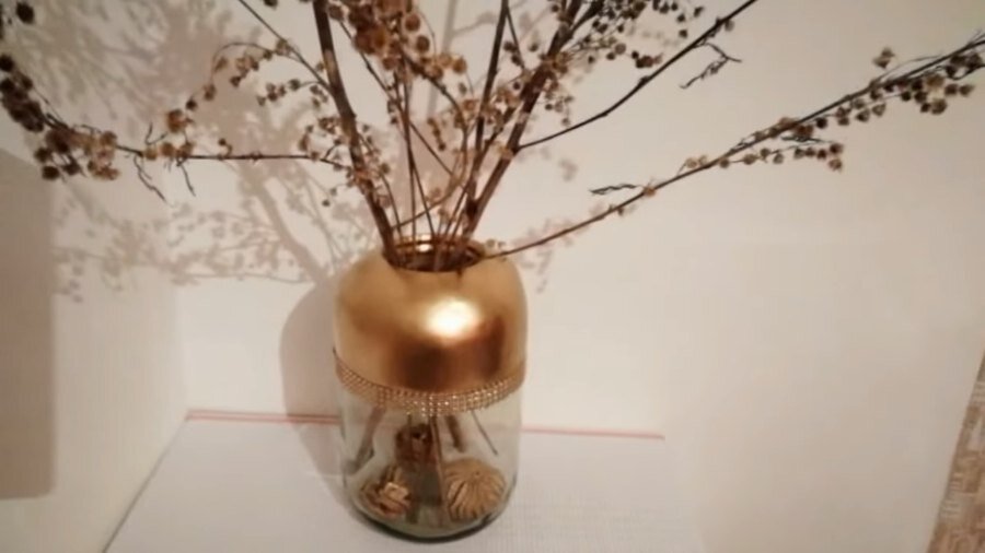 Сделала из 3 литровой банки вазу. Все мелочи изготовления придумала сама, а получилось просто шикарно