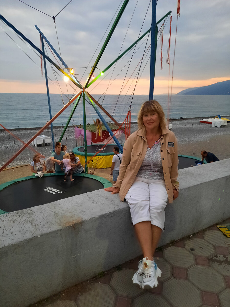 Вчера вечером ездили посмотреть Новую Гагру. Да, конечно, кто любит вечернюю тусу, тому наверное, это понравится . Для меня же эти толпы народа и громкая музыка совершенно непритягательны. Красивым был закат на набережной. Сама набережная мне не очень понравилась. Множество кафе. И из каждого-своя музыка. Звучат песни разного плана. Когда идёшь, всё смешивается в сплошной шум . Но народ гуляет. Праздник жизни. Довольно темно . Мы дошли до отеля "Гранд Палас Абхазия" Понравилось место, где ротонда и ракушка с жемчужиной. Очередь к этой ракушке из желающих сфотографироваться впечатлила. Люди разной комплекции садились на эту жемчужину. Рядом с Посейдоном можно загадать желание, опустив монетку. Мальчик, что на фото, опустил их много. Никак не уходил, поэтому попал на фото. Строится колесо обозрения. С набережной мы свернули на улицу другую, не по которой шли от остановки. Как-то темновато везде. И воздух не такой, как у нас в Старой Гагре. Новая Гагра построена на болотах. Горы