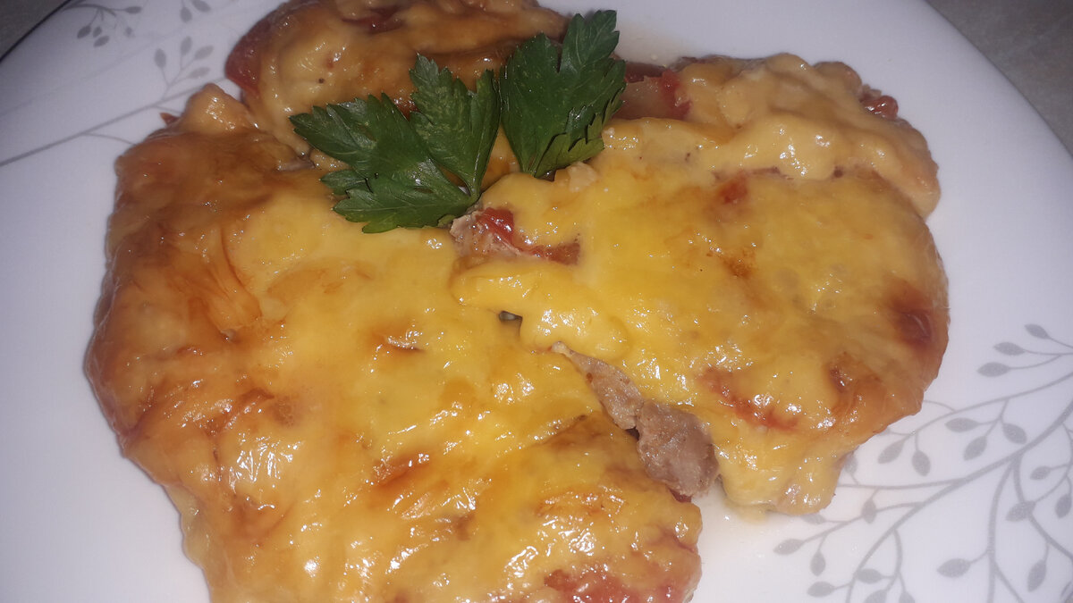 Для приготовления отбивных нам понадобится: свинина-500 гр.,помидоры-1-2 шт.,майонез,сыр-100гр.,соль,специи (по вкусу).