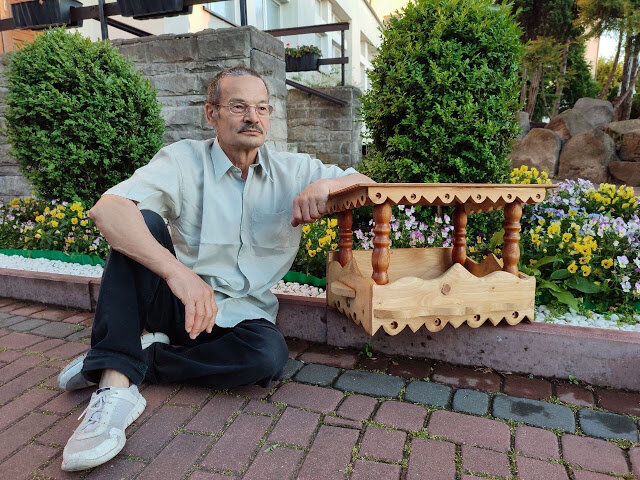 После этого у меня появилась идея сделать для них подарок. Когда я изготавливал домик для птиц, то вспоминал своё детство, когда мы с моим братом-близнецом и политэмигрантом Рафисом Кашаповым, который в данное время находится в Англии, в возрасте 12-14 лет мы рисовали рисунки акварельными красками на горбыли (куски края дерева) - например исторические эпизоды разных времен, орнаменты и узоры картинки. Другие дети тоже подключались и соревновались с нами. Всё, что мы делали, было нашей с братом идеей, которая не входила в школьную программу.