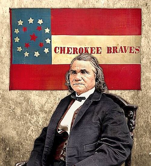 23 июня 1865 года со сдачей последнего генерала Конфедерации завершилась Гражданская война в США. Интересный факт: война между Севером и рабовладельческим Югом завершилась на "индейской территории" в Оклахоме, а сдавшимся военачальником был коренной американец – вождь чероки Стэнд Уоти (Stand Watie) (1806-1871), дослужившийся до звания бригадного генерала в армии Конфедерации. Хотя о прекращении боевых действий между Севером и Югом было объявлено 9 апреля 1865 года, когда генерал Роберт Ли сдался генералу Улиссу Гранту в Аппоматтоксе, штат Вирджиния, война на периферийных театрах боевых действий продолжалась еще два месяца. Стэнд Уоти родился 12 декабря 1806 года в Ооткалоге, штат Чероки (ныне штат Джорджия), в семье Увати, чистокровного чероки, и Сюзанны Риз, наполовину индианки, наполовину белой. Его отец был богатым землевладельцем, державшим рабов. Стэнд был крещен и получил образование в миссионерской школе. В 1830 году Конгресс США принял репрессивный закон о переселении инд