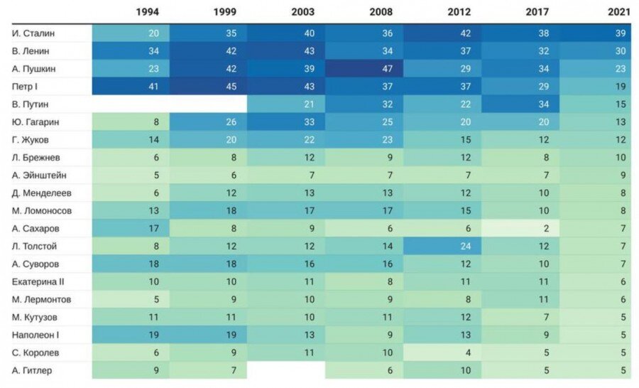 Выдающиеся личности в истории. Сталин снова в лидерах.