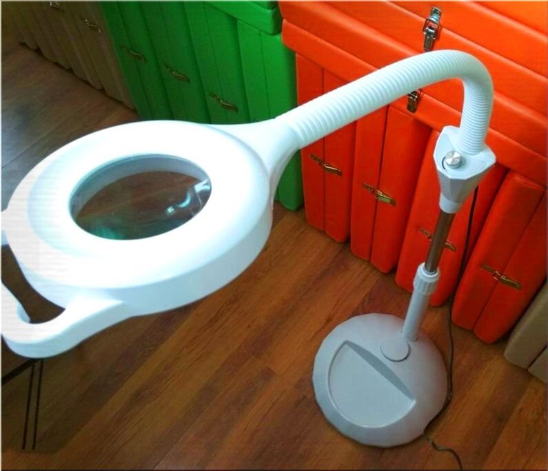 Лампа-лупа для косметолога Лампа-лупа это прибор с увеличительным стеклом состоящий из линзы, гибкого фиксатора, источника света, с штативом. С помощью этого источника света стало удобнее проводить визуальный осмотр какой либо поверхности в деталях. Подобную лампу в большинстве случаев используют в косметологии для окрашивания ресниц, депиляции, контурного макияжа, чистки лица маникюра, наращивания ресниц, педикюра, и так далее Потому её называют косметологическая! Очень удобна в использовании ПРЕИМУЩЕСТВА: ❄ 56 Вт и 148 лед ламп в 4-е ряда. У ламп, которые продают другие продавцы, до 34 Вт максимум. ⭐️ Штатив на КОЛЕСИКАХ удобно и легко передвигает лампу. ↘ можно регулировать яркость, угла наклона, высоты яркости ↘ есть колесики ❗️ Увеличение: 3-х кратное ❄ Лампа – 8 диоптрий ✨ Тип источника света: светодиоды повышенной яркости ⭐️ Напряжение питания: АС 220 В, 50 Гц ⭐️ Мощность: 10v ✌ Вес: 2.52 кг 👌 Высота: 1.71 м Лампу лупу используют для маникюра, а также дерматологи. Очен