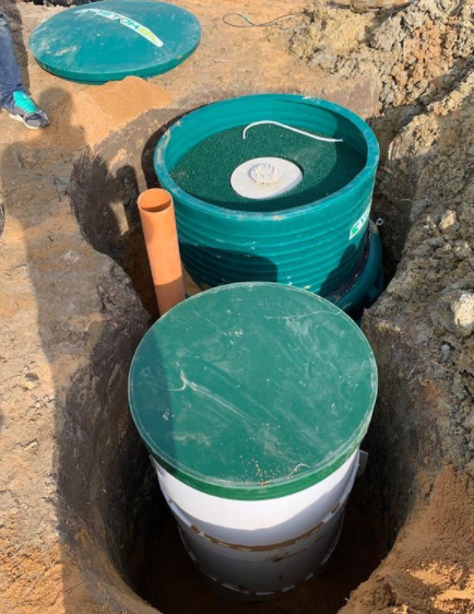 КАНАЛИЗАЦИЯ ГОТОВА, А ДОМА ЕЩЕ НЕТ 🤷🏻♂️ ⠀ Установили систему очистки канализационных сточных вод компании Evo Stok Bio, состоящую из 2 баков: ▪️Перерабатывающий, трехкамерный отстойник-сепаратор ▪️Переливной для будущего подключения к ливневой системе ⠀ Сигнальную ленту положили, если кто-то будет выполнять земляные работы, они ее увидят.