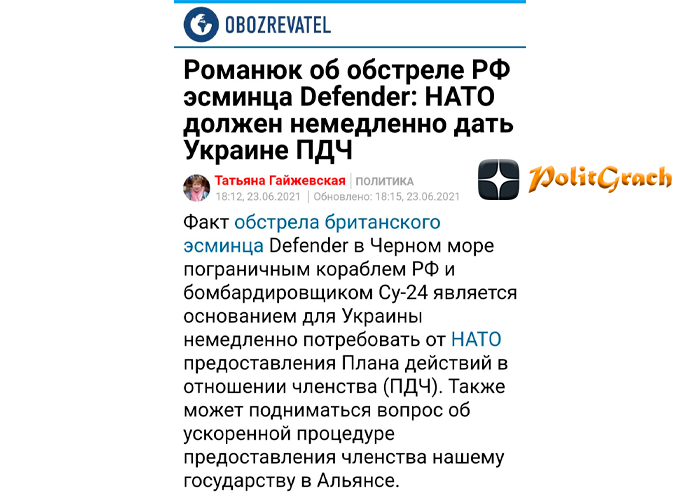 Вчерашние провокации британского эсминца Defender и его мирное выдворение за пределы территориальных вод Российской Федерации вызвала неимоверное возмущение у некоторых лиц на Украине. Ребята потеряв контроль начали требовать от НАТО план по вступлению в его ряды.