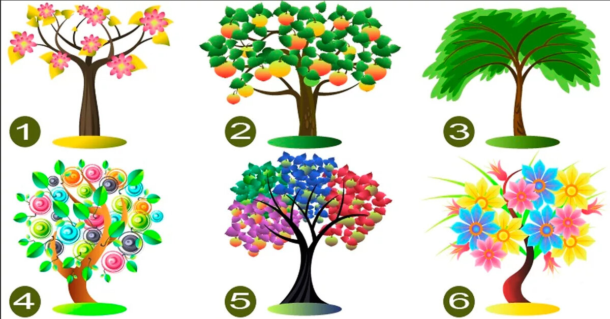 Посмотрите на картинку и выберите то дерево, которое вам нравится больше всего. Его номер — и есть ваш результат. Номер 1 Вы ответственный, спокойный, скромный, при должном настрое — предприимчивый. Боитесь конфликтов, стараетесь достичь во всем гармонии и расстраиваетесь, если это не выходит. Давайте себе и другим право на ошибку. Номер 2 Честный, верный, отдающий себя до последней капли и в работе, и в отношениях. Только не взваливаете ли на себя слишком много? Учитесь расставлять приоритеты. Номер 3 С головой выдает выдумщика — человека идейного и изобретательного. Равнодушие окружающих вас расстраивает. И щите единомышленников — они станут необходимой «подзарядкой». Номер 4 Любопытны, артистичны, тонко чувствуете красоту, умеете сопереживать. Из минусов — бываете капризны, иногда чрезмерно сочувствуете окружающим. Номер 5 Выбор активных, решительных и целеустремленных. Таким не занимать упрямства и трудоголизма — главное, чтобы эти качества были не во вред вам и отношениям с близки