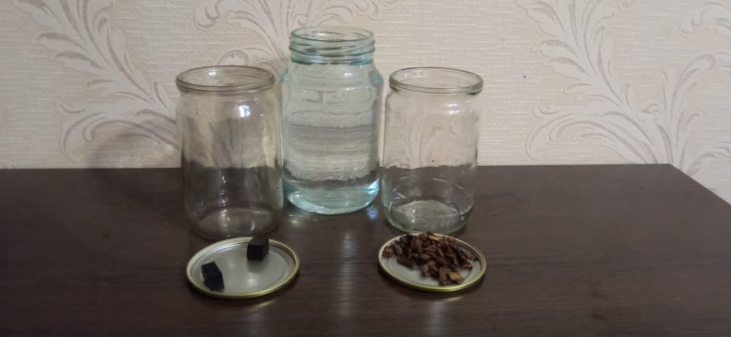 Здравствуйте! Друзья мои, наверное у многих из вас, у кого нет бочки, сейчас в шкафу потихонечку настаивается самогон на дубовых чипсах(палочках). А ведь для такого настаивания потребуется время, минимум 1,5-2 месяца. На просторах интернета я нашел метод интенсивного настаивания, который позволяет получить готовый продукт всего за четыре дня. Разве это не чудо? Ну ладно, давайте всё по порядку. Суть метода состоит в том, что нам потребуется сначала нагреть наш будущий виски до температуры 50-60 градусов цельсия, такой температуры нужно придерживаться на протяжении суток. Затем в течении суток нужно будет придерживаться температуры -10-15 градусов. И так нужно сделать дважды. Для своего эксперимента я взял 1 литр ячменного дистиллята крепостью 43 градуса и разделил его на две равные части. Две 700 граммовые банки и собственно дубовые сегменты. Можно было конечно сделать все в одной банке. Но во первых, хотелось попробовать на дубовых сегментах разного обжига. Во вторых, нужно было