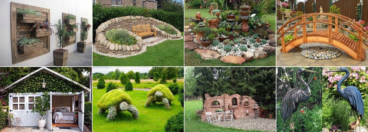Вашему вниманию 10 по-настоящему достойных предложений для украшения двора и дачи! С привкусом старины Обустройство места для отдыха в старинном стиле — проект непростой и недешевый, зато по-настоящему роскошный и долговечный. Булыжник и плитняк, аккуратно соединенные раствором, идеально впишутся в садовый «интерьер» любого стиля! Мрамор (отсыпка) можно заменить более дешевыми гравием или щебнем. Каменная скамья Построить основательную скамейку из бутового камня — впечатляющее архитектурное решение! Матрасы-сидушки можно изготовить самостоятельно — из листового поролона, а чехлы сшить из водонепроницаемой ткани (оксфорд, тентовая, палаточная). Фигуры топиари Искусство создания топиари (живых зеленых скульптур) — кропотливый труд с впечатляющим результатом на выходе. Если давно задаетесь вопросом «как это сделано», прочитайте статью Как сделать живую садовую скульптуру своими руками. Клумба из суккулентов А вот интересное предложение для любителей почвопокровных очитков и каменных роз.