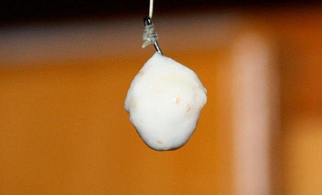 Практически все рыболовы знают, что карася можно ловить на тесто, но мало кто знает, что рыба клюет на клейковину. Причем эта насадка упруга и тягуча, в связи с чем надежно сидит на крючке. Расскажем, как ее приготовить. Конечно, приготовление теста займет у вас меньше времени, но бывает, на рыбалке эта насадка приходится, кстати. Для приготовления клейковины нам понадобится 30 гр. пшеничной муки. Ее засыпаем в чашку и заливаем водой (не холодной, комнатной температуры). Жидкость вливаем небольшими порциями и постоянно перемешиваем с мукой до тех пор, пока не получится тугое тесто. После чего оно скатывается в шар, укладывается в емкость с плотной крышкой и выдерживается в закрытом состоянии 30 минут. Как только тесто вылежало положенное время, стало влажным, то начинаем с него отмывать крахмал. Используем воду комнатной температуры, а сам процесс осуществляем в просторной посуде, также это можно сделать под небольшой струей водопроводного крана. Промывается тесто до тех пор, пока крах