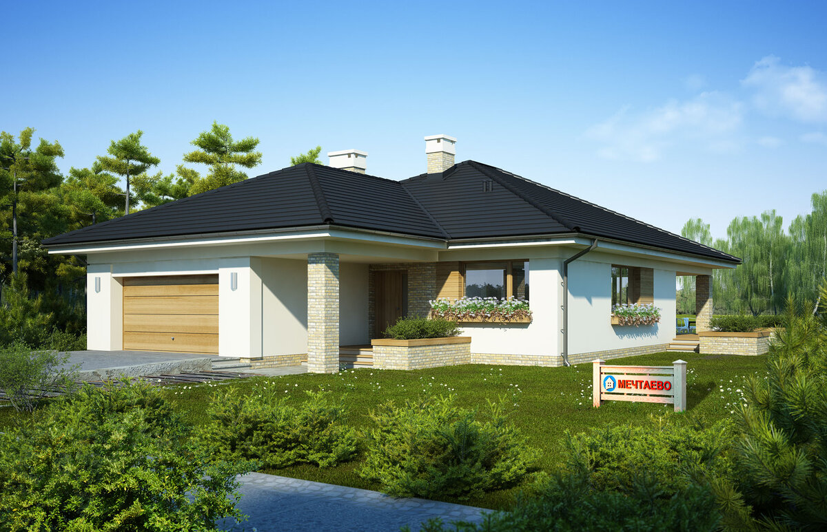 Предлагаем рассмотреть одноэтажный каменный дом "Азовский" - дом, от которого веет спокойствием и безмятежностью. Ведь одноэтажные дома - признак особого статуса. Дом с 4-х сторон Типичный представитель домов типа "фазенды" - вальмовая кровля, удлиненные плоские силуэты, каменные фактурные колонны из кирпича, светлый оштукатуренный фасад, деревянные декоративные элементы на окнах и воротах гаража. Планировка Внушительный дом в 155 квадратов размещает крыльцо. тамбур, гараж на два автомобиля, котельная, кухня с кладовой, гостиная зона, мастер спальня с с/у и ванной, две комнаты, с/у общий, гостиная 32 кв.м, терраса. Проект "Азовский" →→→ Каталог каменных домов →→→ Одноэтажный иди двухэтажный? Что лучше? →→→ Подписывайтесь на наш дзен-канал! Ищите информацию о строительстве и не знаете, как выбрать технологию? Вам точно необходима консультация! Звоните 8-495-660-83-34!