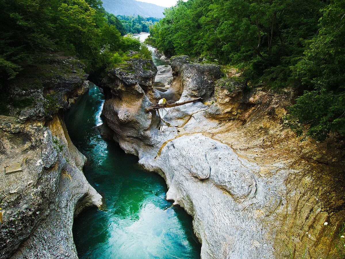 07:00 ☼ Отправление из Краснодара, о от театра Драмы, переезд в поселок Каменномостский Майкопского района (~167 км). Путь будет лежать по живописной дороге, а гид не даст заскучать, занимая ваше внимание обзорной информацией. По дороге санитарная остановка на автобане, где можно перекусить, выпить чай или кофе. ☼ Мост через реку Белая – фотосессия