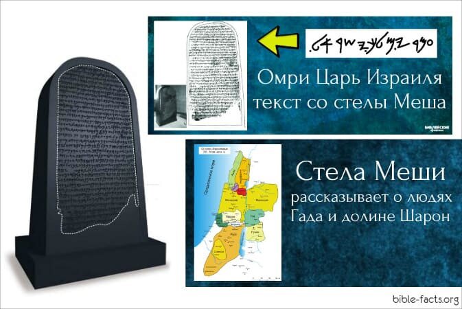 📖 - Это интересно! 📗 - Стела Моавитского царя Меша была случайно обнаружена в августе 1868 года в Дибане (библейский Дивон, столица Моава). 📗 - Этот артефакт представляет неоспоримое доказательство того, что в Библии указана истинная история Израильских царей и их отношений с царями других народов. 📗 - Повествование в тексте идет от имени царя моавитян Меша, который рассказывает о своей победе в конфликте с израильтянами. Этот конфликт описан и в Библии, в 4-я Царств (3:4–27). Ниже перечислены другие личности и географические названия, которые упоминаются на этой каменной плите, и о которых также повествуется в Библии: ► Моавитское божество Кемош (в русском переводе Библии "Хамос") - часто упоминается в Ветхом Завете, к примеру в 3-Царств 11:33. ► Израильский царь Омри (в русской Библии "Амврий") описывается в 3-Царств 16гл. ► Города Нево и Баал-Меон ("Ваал-Меон") упоминаются в 1-Паралипоменон 5:8 и других местах. ► О людях Гада и долине Шарон тоже много говорится в Ветхом Завете.