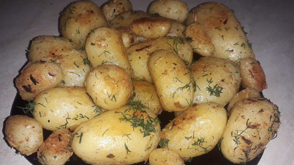 Молодая картошечка с хрустящей корочкой и чесночком.Никто не останется равнодушным.