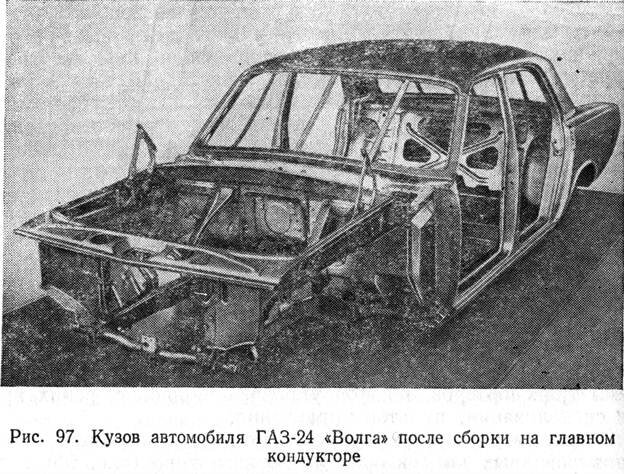 Для сборки и сварки кузова ГАЗ-24 использовалось шесть стационарных кондукторов, включая несколько сравнительно простых, предназначенных для подсборки отдельных узлов — основания кузова, боковин и т.п., и весивший 12 тонн главный кондуктор, служивший для окончательной сборки (см. рисунок выше), работа которого была в значительной степени механизирована за счёт пневматических и гидравлических сервоприводов. Особое внимание было уделено упрощению технологических операций и снижению трудозатрат — в частности, рациональному расположению фиксирующих приспособлений и уменьшению их размера и массы.