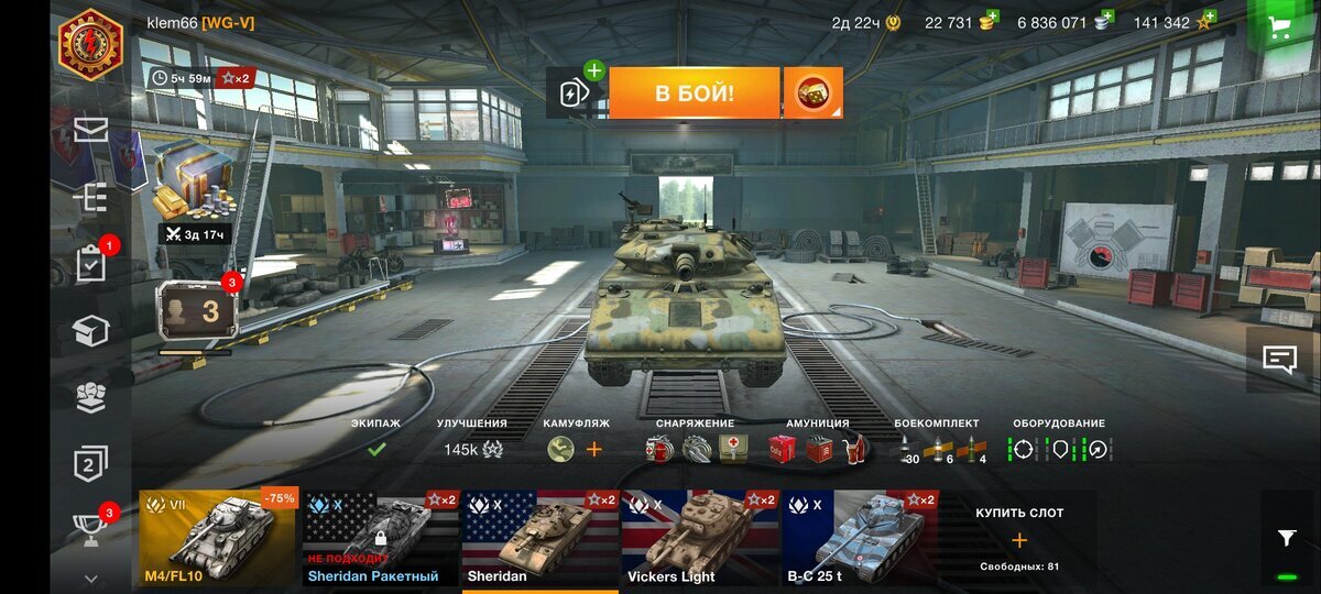 Здравствуйте, дорогие читатели моего канала. Сегодня мы с вами разберём американский лёгкий танк 10 уровня XM551 Sheridan. XM551 Sheridan Какие обычно приходят ассоциации при упоминании словосочетания "Лёгкий танк"? Быстрый, маленький, без брони и с орудием, либо уступающим во всем средним танкам, либо примерно равным им, основная задача которых - проводить разведку. А нанесение урона оставлять более грозно вооруженным союзникам. Да, для каких-то лт это, может быть, и верно. Но не для Шеридана. XM551 - единственный лт 10 уровня, который на вооружении имеет орудие калибром 152мм. Обычно орудия такого калибра стоят на противотанковых самоходках. Этим и уникален Шеридан. Давайте подробнее разберём его орудие. Есть пробитие Основные снаряды - подкалиберы( 230 пробития, и 560 урона) со скоростью полета в 1000м/с. Казалось бы, очень даже неплохо, но вот у остальных лт 10 основные снаряды имеют скорость полета почти в 1,5 раза выше. В качестве золотых снарядов идут кумулятивы (310 мм пробития