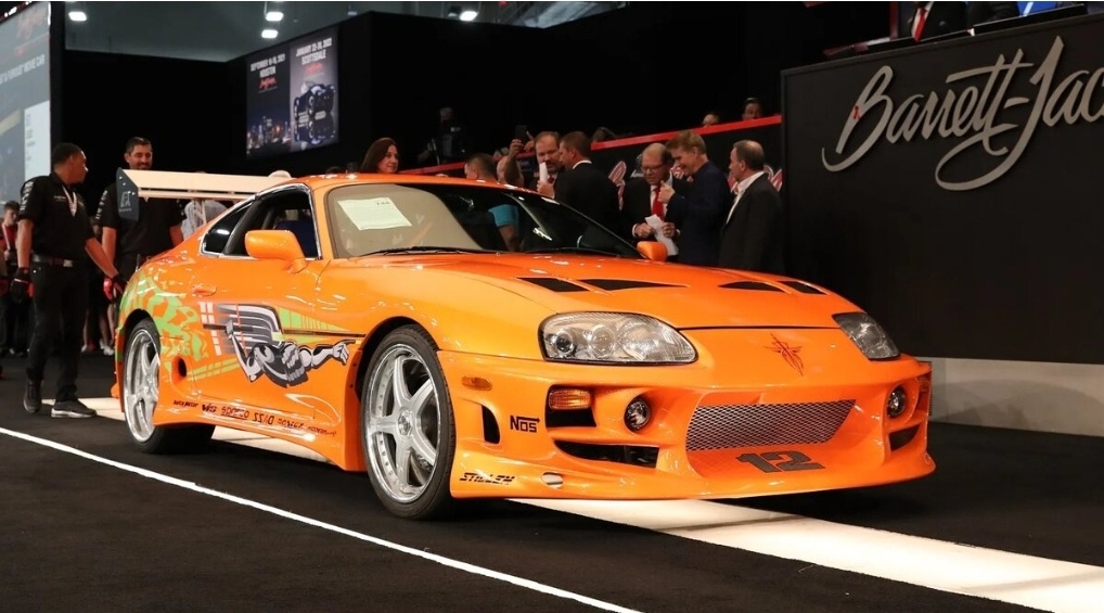 На аукционе Barret-Jackson завершились торги за ярко-оранжевую Toyota Supra, которая участвовала в съёмках первых двух частей «Форсажа». Автомобиль, которым на съёмочной площадке управлял ныне покойный актёр Пол Уокер, купили за 550 тысяч долларов — это эквивалент 40,1 миллиона рублей и самая высокая цена в мире для этой Автомобиль, сошедший с конвейера в 1994 году, построили в калифорнийской студии Shark Shop. Именно этот экземпляр сохранил штатную трёхлитровую «шестёрку» 2JZ-GTE с двойным турбонаддувом, развивающую около 320 л.с., и четырёхступенчатый «автомат», хотя для съёмок селектор коробки замаскировали под рычаг «механики». Toyota Supra ушла с молотка именно в том виде, в каком снималась в кино — с ярко-оранжевым кузовом и графикой под названием Nuclear Gladiator, обвесом Bomex, антикрылом APR и 19-дюймовыми колёсными дисками от Racing Hart. Интерьер спорткара отделан чёрной кожей с синими вставками и украшен дополнительными приборами на левой стойке и правой части пе