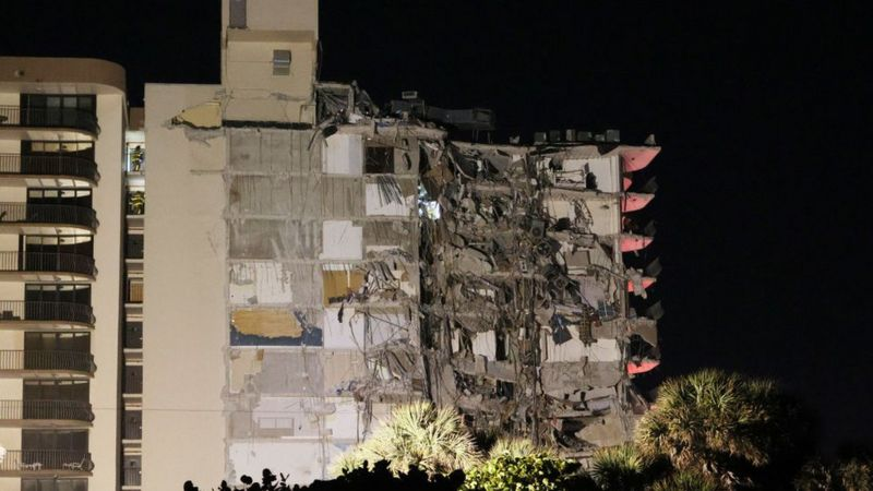 В округе Майами-Дейд, штат Флорида, частично обрушилось 12-этажное здание, пока известно о гибели одного человека, однако число жертв может увеличиться. Спасатели ведут поиски выживших, на месте происшествия продолжается масштабная операция. На снимках из района Серфсайд, расположенного к северу от Майами-Бич, видна огромная куча щебня, возвышающаяся у жилого дома. Одна женщина погибла, и есть опасения, что под завалами или запертыми в нижних этажах остаются еще десятки людей. Спасатели с помощью подъемных кранов пытаются добраться до жителей близлежащих квартир, чтобы помочь им эвакуироваться. По словам официальных лиц, спасатели вытащили из обломков 35 человек. Десяти из них потребовалась медицинская помощь, двое отправлены в больницу. "Задняя часть здания, вероятно, на треть или даже больше, полностью сплющена", - заявил на пресс-конференции мэр Серфсайда Чарльз Беркетт. Губернатор Флориды Рон ДеСантис сказал, что отправится на место происшествия позже в четверг. "Мы готовимся к пло