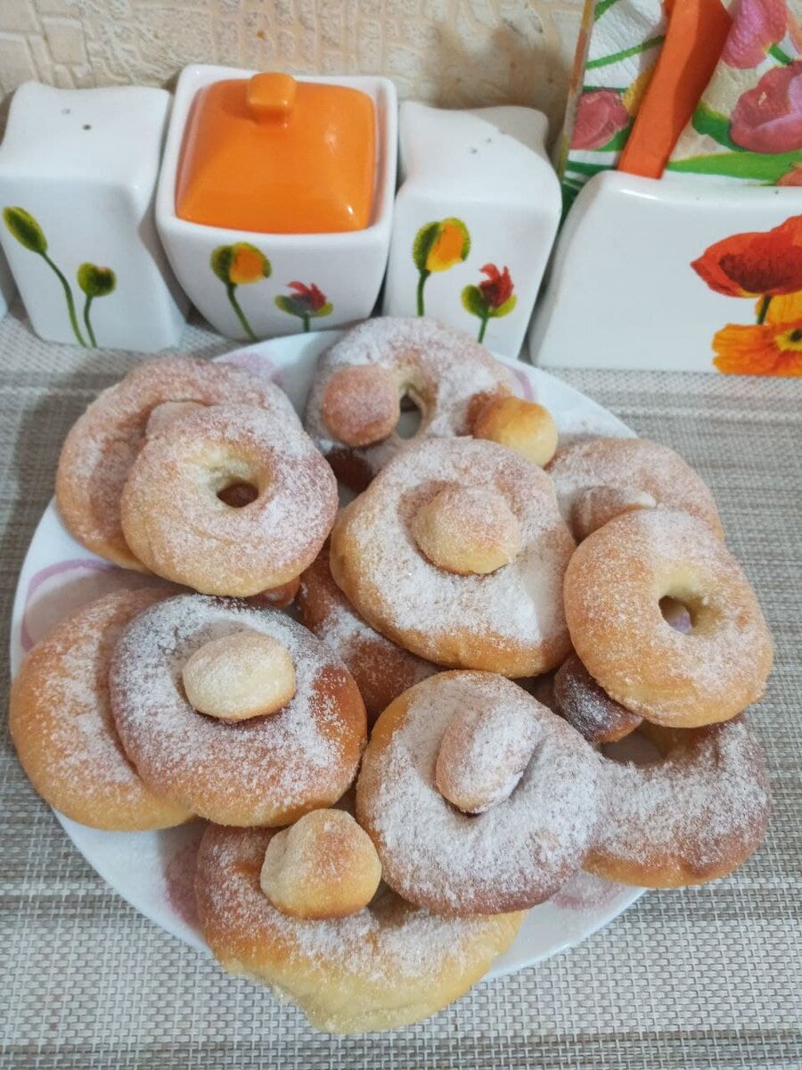 Здравствуйте, мои дорогие подписчики и гости! Меня зовут Елена, я пенсионерка и у меня диабет 2-го типа, что меняет образ жизни и рацион. Поэтому готовлю те блюда, которые разрешены или допускаются иногда в меню. Хотя для детей и внуков готовлю всё- выпечку и т.д. Предлагаю творожные пончики. Кому нельзя жаренное и кто не любит творог есть просто так, это альтернативная выпечка. Нам понадобится- РЕЦЕПТ: Мука +- 200 Сахар 50 г ~ 3 ст.л Растительное масло 1 ст.л Яйцо 1 шт Творог 250 г. Ванильный сахар 8 г Разрыхлитель 1 ч.л. с верхом (5.5 г) Соль по вкусу. Выпекать при 180 ° - 20-25 минут. Время выпечки и температура зависят от особенностей духовки. Приготовить чашку, взбить миксером в ней яйцо, соль, сахар, ванильный сахар. Добавить масло и творог, перемешать лопаткой, добавить муку с разрыхлителем. Руками вымесить,сформировать колбаску, разделить на 12 частей, скатать шарики, примять пальцами, вырезать серединку, у меня была маленькая крышечка, выложить на противень и вып