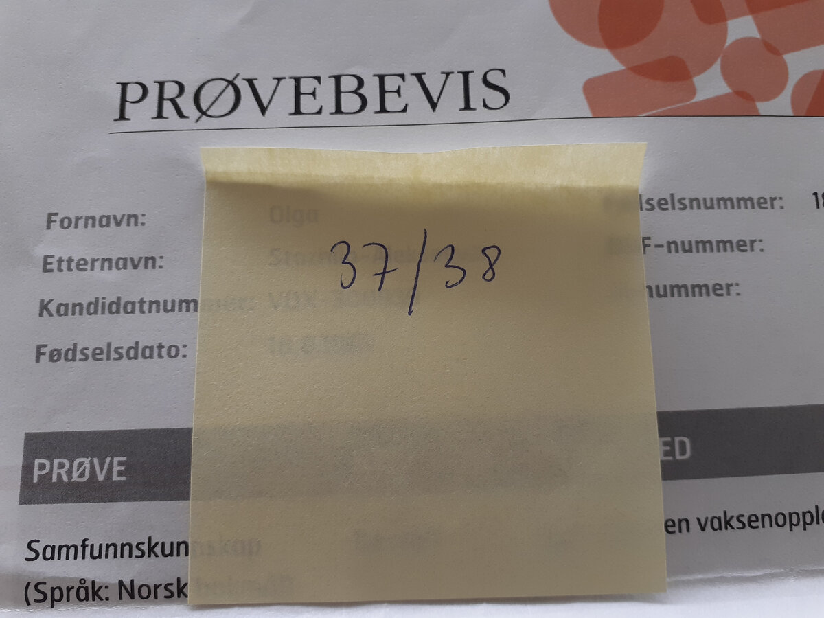 Сдала норвежское обществоведение. После некоторых колебаний - сдавать на английском, русском или норвежском языке - выбрала норвежский. Но сомневалась в своих возможностях напрасно. Поскольку из 38 вопросов ответила неправильно только на один. Знакомиться с предметом было интересно. Преподавали нам его в сокращенном 50-часовом варианте на английском и норвежском языках на выбор в двух группах.
