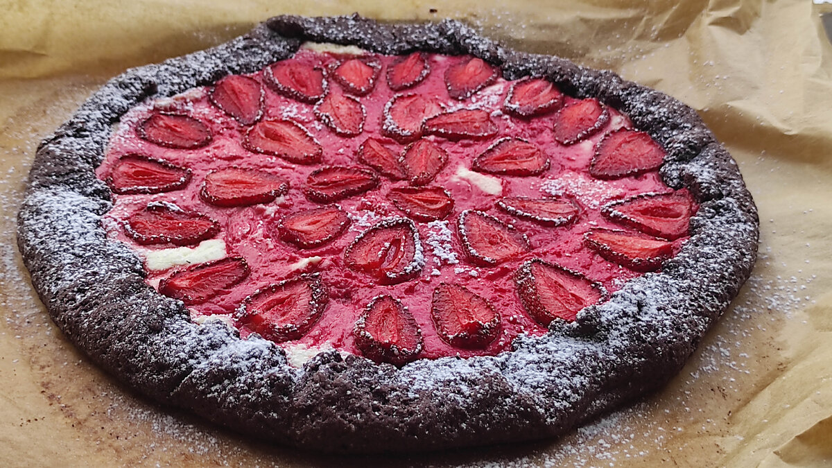 Выкладываем клубничку, заворачиваем края.