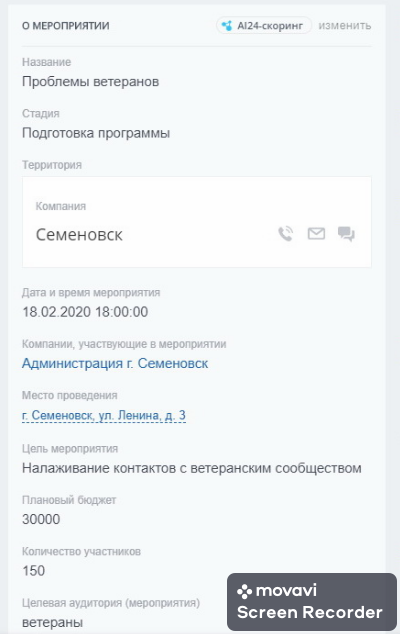 Сценарий организации мероприятий реализован в виде направления “Мероприятия”.