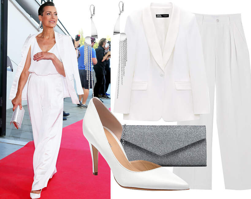 На вчерашнем гала-вечере Eagles 2021 актриса Данута Стенка появилась в творчестве Мацея Зеня. Звезда была одета в белый образ, состоящий из брюк-палаццо, длинного пиджака и нежного топа. Завершили укладку аксессуары - серебряный клатч, белые туфли с острым носком и выразительные серебряные серьги размера XXL. Как воссоздать этот образ за копейки? Здесь представлены хиты известных сетевых магазинов и польских брендов! Летом выбор наряда на вечер может стать проблемой. Даже после захода солнца жарко, но мы не всегда хотим (и можем!) Позволить себе скудные наряды. Итак, выбираем воздушный белый костюм - одежда оверсайз обеспечит нам комфорт, а на белой ткани не будет складок. Конечно, в конце стоит добавить, что белый - это лето ... новый черный! Он такой же элегантный, но на ощупь мягче. Вот модный образ лета 2021 года в стиле Дануты Стеньки! 1/8 Куртка Zara, 2/8 Серьги Apart 3/8 Атласный топ H&M, 4/8 Сумка Jenny Fairy / CCC, 5/8 Брюки Bershka, 6/8 Каблуки Solo Femme / Eobuwie.