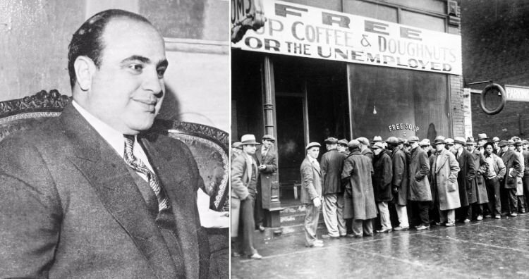 Аль Капоне, печально известный гангстер, основал суповую кухню под названием “Бесплатный суп, кофе и пончики для безработных” во время Великой депрессии в Чикаго. Кухня предоставляла все три блюда для 2200 безработных и голодных чикагцев каждый день. В унылом ноябре 1930 года так называемый “Враг народа номер один” организовал центр бесплатного питания для безработных. Почти 75 000 человек выстроились в очередь, чтобы записаться на обед, и почти треть из них немедленно получили облегчение. Общее количество блюд, которые он спонсировал, превысило 120 000, несмотря на то, что на кухне работало ограниченное количество сотрудников, обслуживающих все три приема пищи в день. Никому из голодающих не отказывали, ничего от них не требовали, и им даже не нужно было доказывать свою нужду. Позже один из соратников Капоне упомянул, что Капоне не мог вынести, когда бедняги голодают и никто ничего с этим не делает, поэтому он решил сделать это сам. Из-за этого случая и многих других, когда он заним