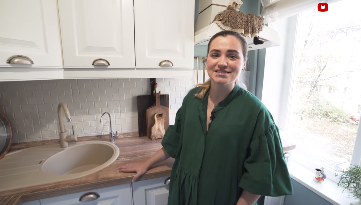Легкая и светлая кухня 6 м² в хрущевке для хозяйки кондитерской