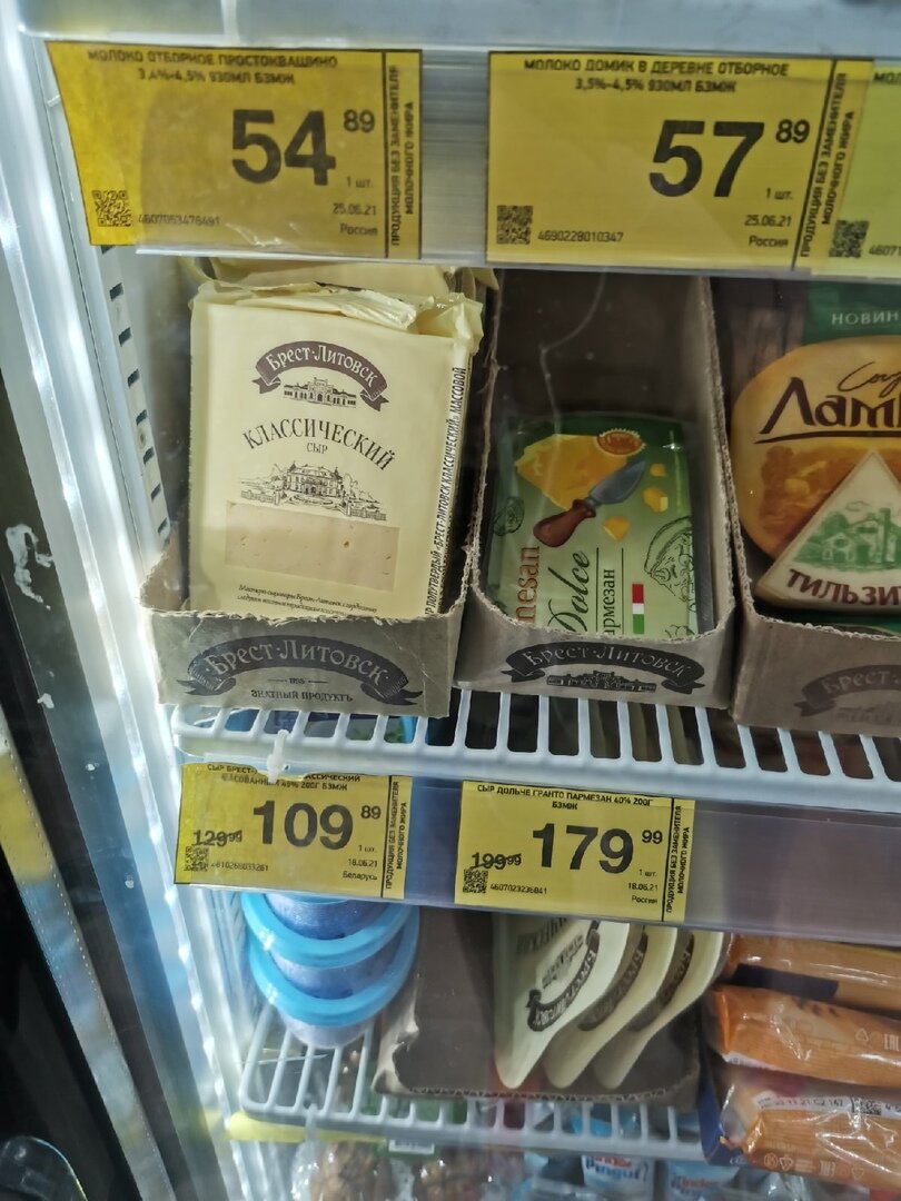 "Брест-Литовск" уже более привычный для меня сыр, его мы покупали и в других магазинах, если были скидки, поэтому вкус его знаю, качество полностью устраивает, а цена в 109 рублей вполне мотивирует на покупку, экономно.