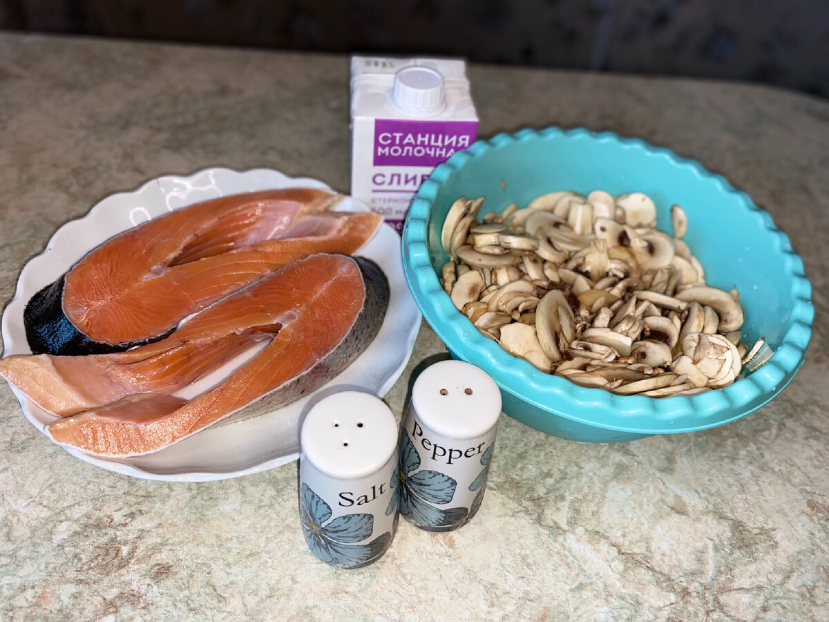 Рыбный день никто не отменял, добавьте в своё меню рыбу 1 - 2 раза в неделю, пользу форели для организма можно перечислять долго. Ценители изысканного вкуса оценят это блюдо по достоинству) Лучший рецепт приготовления форели - это на сковородке. Обжариваем по 3 минуты с каждой стороны по 2 раза. Рыбка получается нежная и сочная. Не надо ее передерживать. Готовится очень быстро и просто, удивите и порадуйте гостей или домочадцев этим вкусным блюдом. Ингредиенты: Радужная форель - 2 стейка Шампиньоны - 300 гр. Сливки 20% - 500 мл. Чеснок - 2 зубчика Соль, перец, итальянские травы Шаг 1 У меня уже готовые стейки. Для начала промоем стейки форели, можно обсушить бумажным полотенцами. На сковородку наливаем подсолнечное масло и обжариваем стейки по 3 минуты с каждой стороны 2 раза. Посыпать итальянскими травами. Шаг 2 Чеснок нарезаем мелко. Обжариваем минуту на сковородке с добавлением масла. Шаг 3 Далее в эту же сковородку кладём шампиньоны и обжариваем 15 минут, солим и перчим. Ша